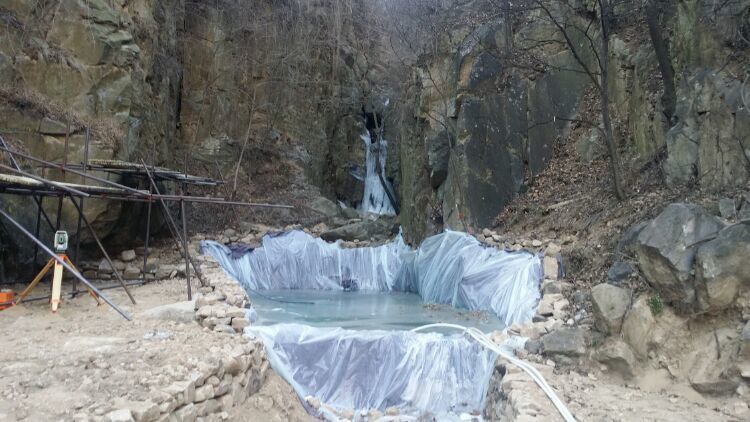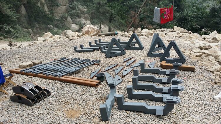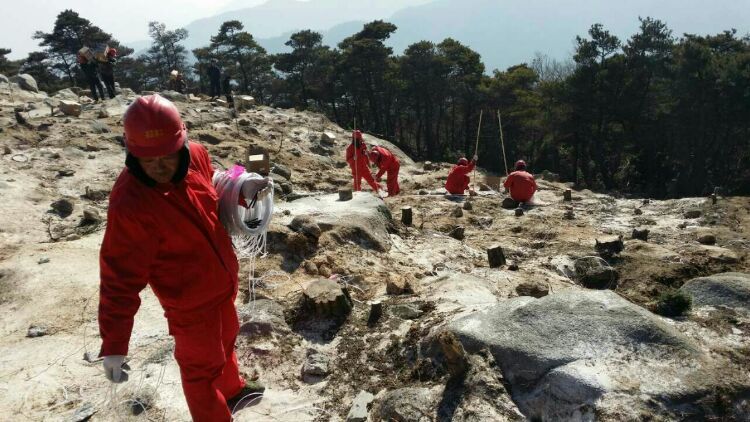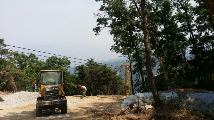 施工用水是在山腳下接的山泉水,做蓄水池,再用貨索運(yùn)到山頂。