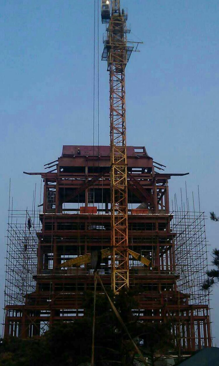 東申鋁瓦公司為望海樓供應(yīng)鋁瓦及屋面獸寶鼎等,德才古建公司承接的魯商銀座天蒙山旅游區(qū)望海樓項(xiàng)目,開工于2014年9月,歷經(jīng)接近兩年艱苦施工,在沒水沒電沒路沒有大型施工設(shè)備的情況下,在海拔1000余米沂蒙山頂峰惡劣天氣情況下,國(guó)內(nèi)第一個(gè)鋼結(jié)構(gòu)全鋁古建閣樓于2016年7月16號(hào)向全國(guó)游客開放,回顧兩年的艱辛,特記之.