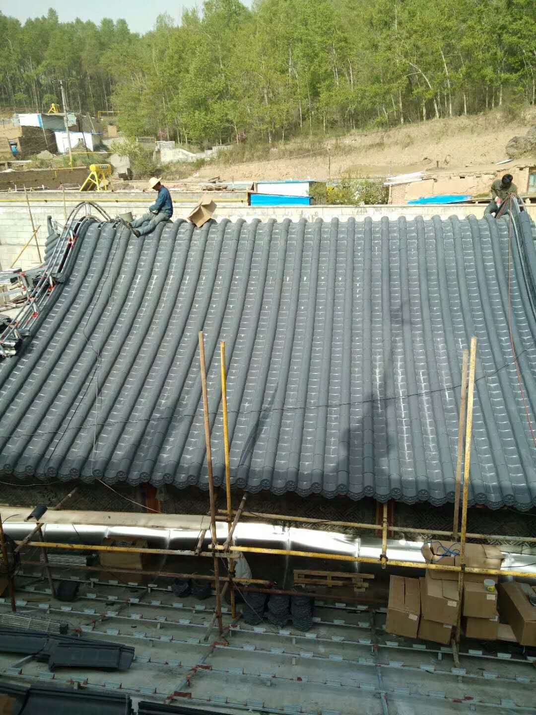 青海省湟中縣魯沙爾清真大寺,上街清真大寺,陽(yáng)村清真大寺屋面改造正在施工,屋面鋁瓦工程馬上完工。