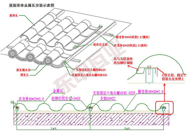 2.精確好整體的布局,就東申瓦業(yè)給出的建議焊接和打螺絲焊接龍骨屋面;