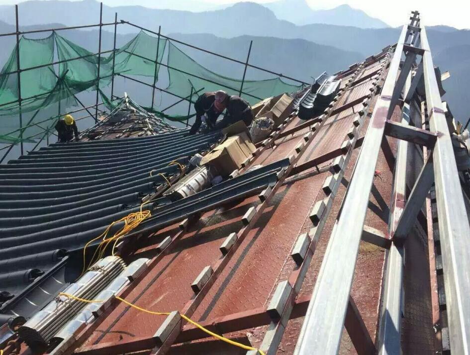 安裝是一個古老的話題;為什么說在安裝上實(shí)現(xiàn)了飛躍呢,因為傳統(tǒng)的瓦在安裝上離不開水泥砂漿等厚重的輔助材料,施工時間長,需要天氣等自然條件;這次金屬才是的瓦,從此打破了傳統(tǒng)的安裝方式;屋面全部采用金屬搭接,焊接連接,螺絲固定;新型屋面安裝升級;