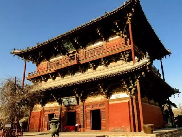 天津薊縣獨樂寺觀音閣,始建于唐,后經(jīng)遼統(tǒng)和二年(984年)重建。其木結(jié)構(gòu)技巧及建筑藝術(shù)成就被譽(yù)為中國古建筑之典范,它結(jié)合柱、梁及斗拱鋪作,造出一座內(nèi)部呈空筒狀的樓閣,用以容納高大的立像。