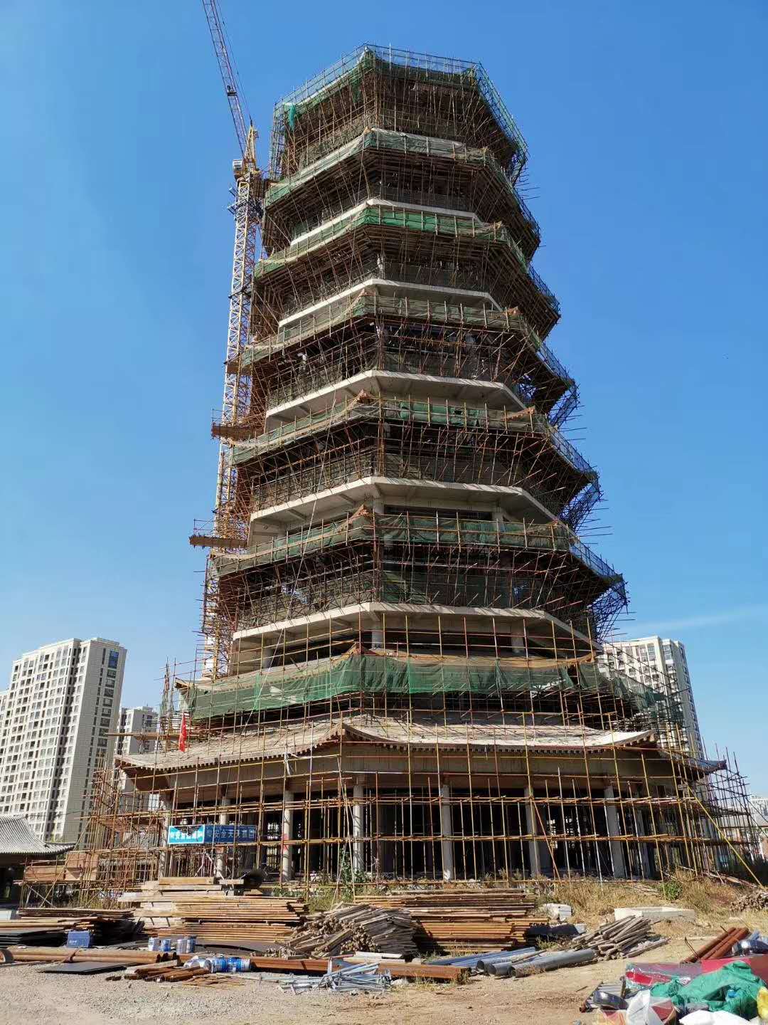 2020年5月12日東申瓦業(yè)承接的山東青島重點標(biāo)志性項目文峰塔的屋面鋁瓦工程已經(jīng)開始施工;