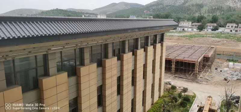 屋面面積:2800平方;屋面下選用鋁合金斜方椽;新中式風(fēng)格,整體屋面美觀大方;