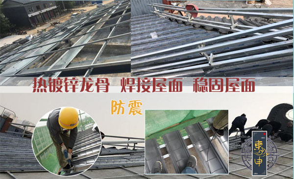 新型干法屋面安裝方式的固定屋面在一定程度上可以預(yù)防地震.普通的地震房屋不倒的情況下,瓦都不會(huì)出現(xiàn)任何問(wèn)題;屋面都是焊接螺絲非常的穩(wěn)固.