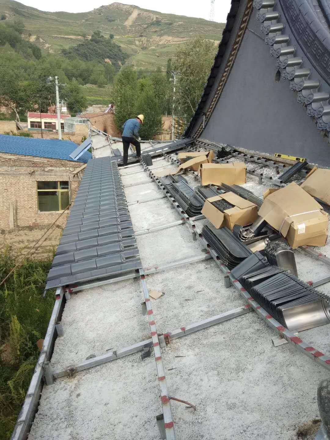 2.青海省地理位置偏僻,不像江南水鄉(xiāng),有很多地方自然豐富資源;容易發(fā)展,很多清真寺的所在地區(qū)比較偏僻,瓦片更換運輸也不方便,選用金屬瓦片,質(zhì)地輕,在路上方便運輸;安裝牢固,焊接打螺絲方式.
