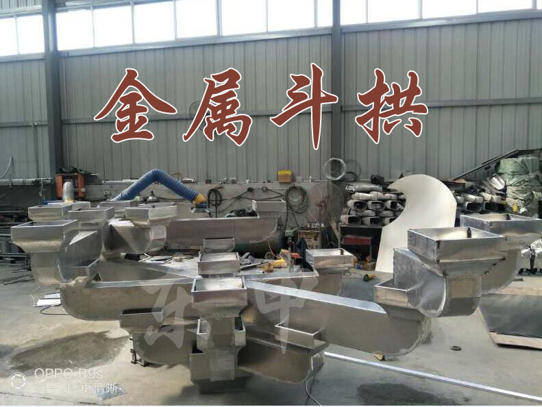 金屬斗拱,提高整個建筑的品質,經濟合算綠色環(huán)保,可回收再利用,免維護.