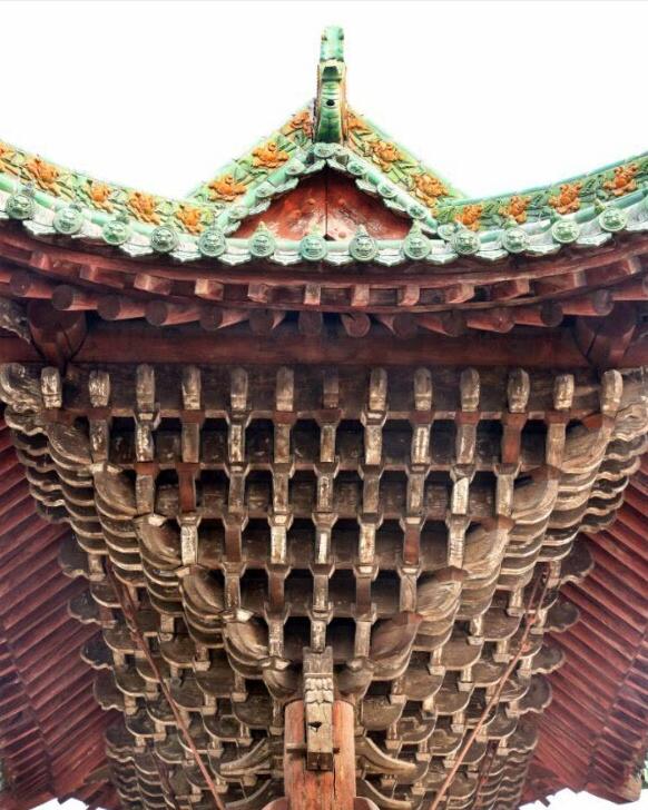 與遼同時的北宋,已開始著手對斗拱進行大規(guī)模的改造,或者可以說宋代是斗拱演變史上一個重要的轉(zhuǎn)變期。由于屋頂?shù)钠露仍龃螅⒅痈,斗拱的作用開始弱化,不僅比例變小,而且補間輔作增多。