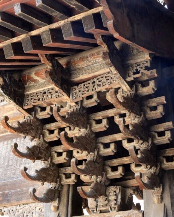 南宋以后,斗拱更加細膩,元代以后,斗拱直接承托屋頂?shù)墓δ苻D(zhuǎn)由挑檐檁承擔,它的原始作用消失。到了明清,斗拱的結構作用已經(jīng)完全退化,成為梁架與屋頂間的一個墊層,從外觀上看,那些細小堆疊的密密叢叢的斗拱,就好像屋頂與梁柱間的過渡性裝飾。這時它正由一般語言變?yōu)檠b飾語言,是對唐遼時代斗拱語言的一種記憶。