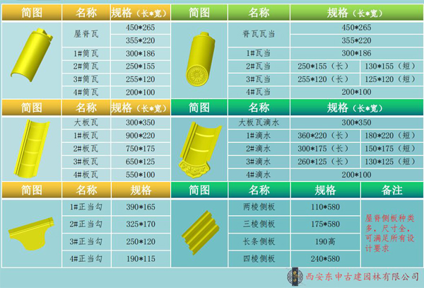 還有一種規(guī)格的是連體屋面瓦,它是一體的,是一大片一大片的一種瓦片,主要做的是2號瓦和3號瓦兩種類型,具體的規(guī)格如下,