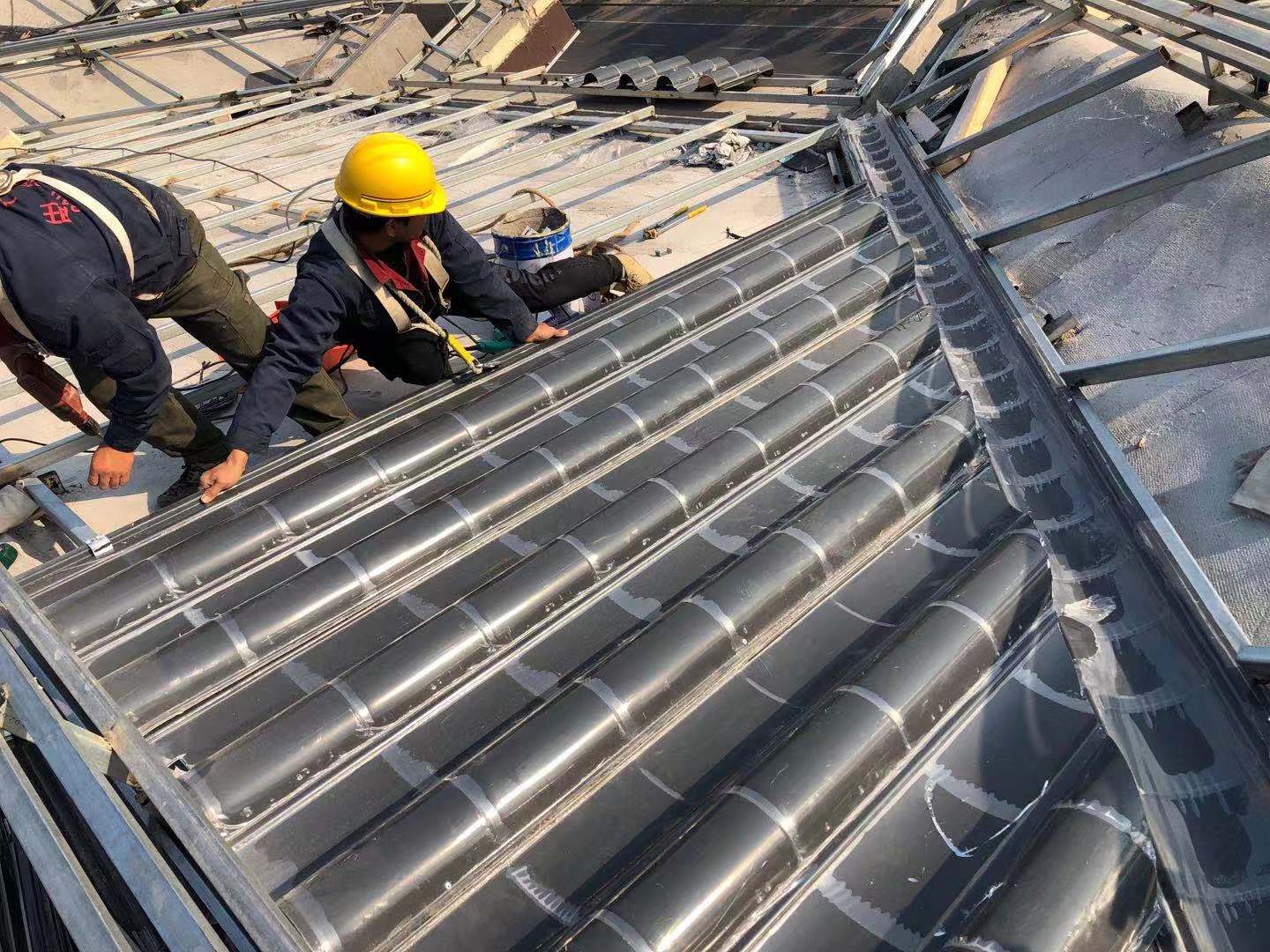 第二,安裝連體瓦,連體瓦直接掛在豎龍骨,瓦與瓦之間用支架相扣,先安裝屋檐瓦,后面的瓦直接搭接在屋檐瓦的搭接臺(tái)上。