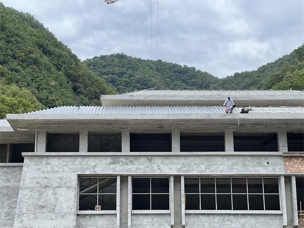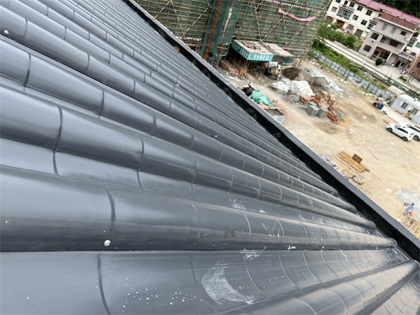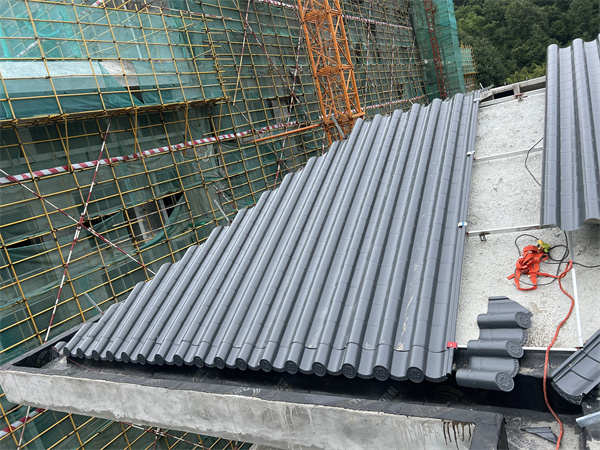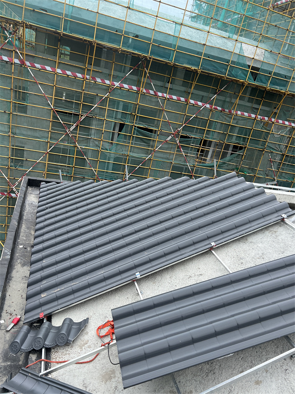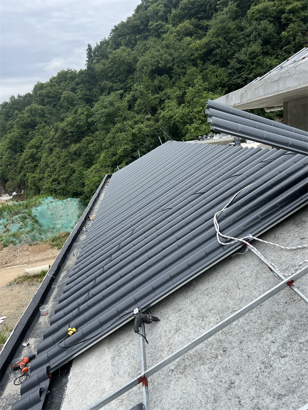柞水龍盤(pán)研發(fā)中心綜合樓屋面選用3號(hào)連體金屬瓦,厚度為1.0mm,面積約2600平方;顏色為灰色,風(fēng)格為新中式仿古風(fēng)格,唐代風(fēng)格。項(xiàng)目正在施工中,現(xiàn)將施工現(xiàn)場(chǎng)圖給大家做分享: