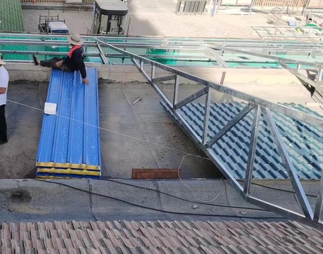 蘭州西坊清真大寺屋面鋁合金瓦改造正在施工,屋面整體采用2號分體鋁合金瓦;厚度:1.2mm 顏色:灰色; 材質(zhì):5052鋁合金瓦;面積約590個平方;風格為:新中式仿古風;感謝西坊清真寺主任阿訇對東申瓦業(yè)的信任和支持;清真寺專用屋面瓦,推薦您選擇仿古鋁合金瓦。