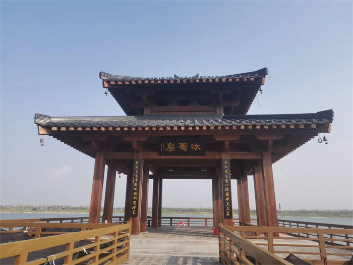 陜西昆明池閘房及廊亭工程完工,整體漂亮美觀,采用東申瓦業(yè)生產(chǎn)的古建金屬瓦,厚度:1.2mm,顏色,灰色;專業(yè)定制瓦當(dāng)?shù)嗡,新中式仿古風(fēng)格;感謝景觀提升工程(昆明池七夕公園)項目部的老總們對東申瓦業(yè)的信賴和關(guān)照。打造精美景觀水域仿古屋面工程,選用東申古建金屬瓦。