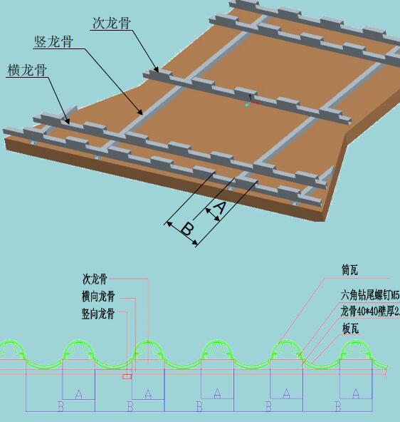 首先次龍骨是需要焊接在橫龍骨上用于掛瓦的,這一塊這個尺寸一定要把握好,次龍骨的尺寸為A尺寸,次龍骨的焊接重點管控尺寸為B尺寸;