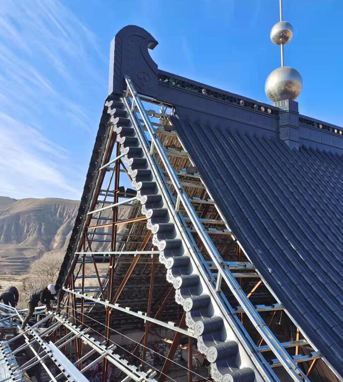 仿古金屬瓦施工雖然沒有傳統(tǒng)屋面瓦那么復雜,但也需要遵循一定的規(guī)律性,把握好關(guān)鍵點,才能達到事半功倍的安裝效率;細節(jié)決定成敗;細節(jié)鑄造精品工程。
