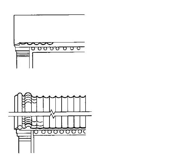 屋檐瓦片(圓形代表筒瓦,半圓形是板瓦)
