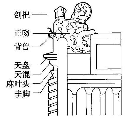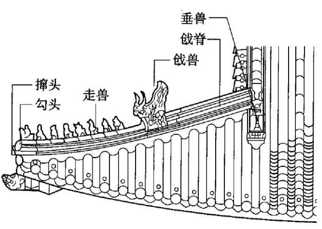 斜脊(垂脊,戧脊),垂獸(戧獸),小獸(走獸)