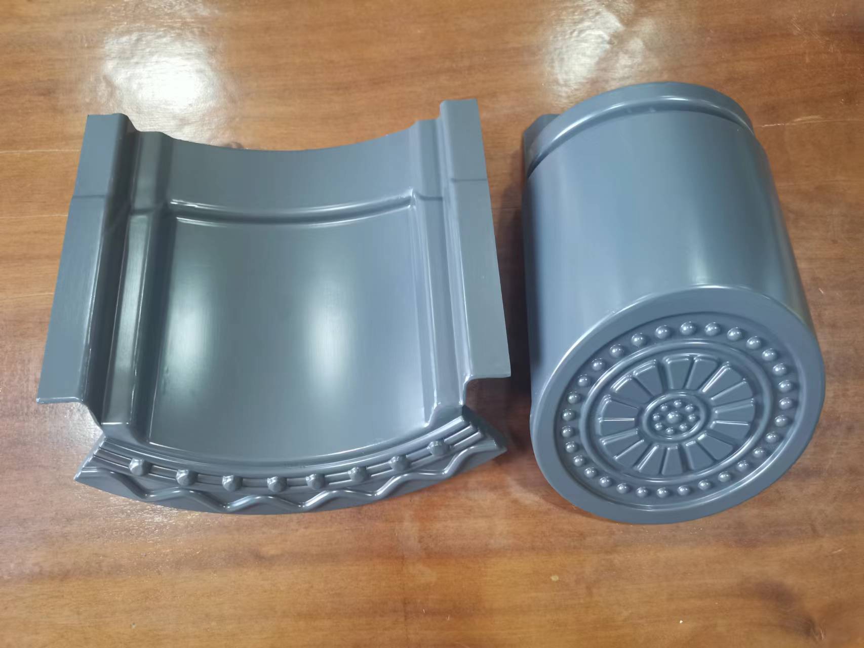鋁制仿古瓦既鋁合金板材料所制作的仿古風(fēng)格的瓦; 今天給大家的介紹是3號瓦當(dāng)和滴水瓦 瓦當(dāng)規(guī)格:125*120; 滴水規(guī)格:130*125; 圖案:唐代風(fēng)格(八瓣蓮花)
