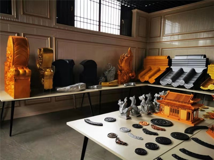 屋面裝飾不僅僅是瓦當(dāng)?shù)嗡,還有更多的屋面吻獸翹腳,小獸,垂獸,套獸,等各種屋面裝飾。這些裝飾從很早的年代就流傳下來(lái),有著很早歷史意義,這些裝飾才是仿古瓦屋面的靈魂所在。