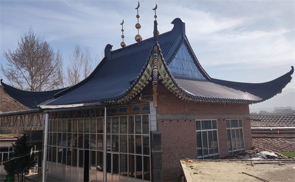 仿古金屬瓦作為一種新型的屋面瓦,在近五六年來(lái),陸陸續(xù)續(xù)被應(yīng)用于清真寺屋面改造,而且使用率一直走高;仿古金屬瓦最開(kāi)始使用的區(qū)域?yàn)槲鞅钡貐^(qū)的甘肅地區(qū);這幾年附近的青海,寧夏區(qū)域的清真寺也都開(kāi)始使用仿古金屬瓦,很多寺廟的主任都對(duì)仿古金屬瓦上屋面后的效果贊不絕口。