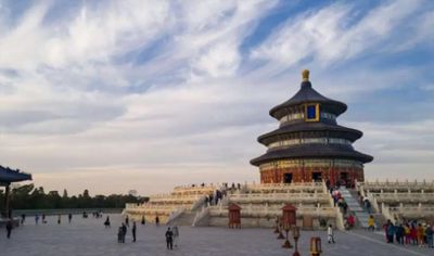 天壇占地280萬(wàn)平方米,比故宮大四倍,但它的建筑卻比故宮要少得多,所有建筑的布局都在中軸線上,四周輔以松柏等綠化,襯托得主建筑莊嚴(yán)肅穆。
