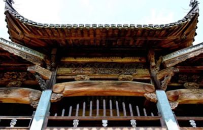 首先,木構(gòu)架是中國古代建筑的首要特征:即在房屋的面闊和進深基礎(chǔ)上,設(shè)置石礎(chǔ),而后在石礎(chǔ)上立柱,再于柱上架梁,即“四梁八柱”梁柱間連枋,梁枋上又承架、檁、椽,二者相互支撐并互為依托,以木構(gòu)架來承托屋頂或樓層重量,繼而再通過梁架傳遞至木柱,木柱再傳導(dǎo)至地面,加之榫卯結(jié)構(gòu)和斗拱技術(shù)的運用,使這種木構(gòu)建筑具有了抗擊外力的功能,從而成為一種結(jié)構(gòu)復(fù)雜、工藝嚴(yán)格、結(jié)實、牢固,“房倒屋不塌”的建筑形式。