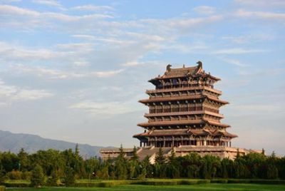 三是各種形制屋頂。屋頂造型是最富藝術(shù)魅力的部分,在宗法社會制度下,它也是衡量建筑物等級的主要標(biāo)志。其等級次序由高到低依次為廡殿頂、歇山頂、懸山頂和硬山頂,攢尖頂其中重檐又高于單檐。屋頂起翹、出翹,使屋頂翼角和檐口出現(xiàn)了優(yōu)美的曲線如翚斯飛,使立柱有意稍稍向內(nèi)傾斜的“側(cè)腳”和外圍柱由中心向隅角逐漸加高的“生起”方式,從而增加建筑動感。太原晉祠圣母殿建筑手法即充分體現(xiàn)了這種特色。