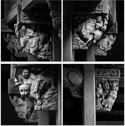 其中砌墻粉刷的泥工稱為“水作”;建造木構(gòu)架,做門窗的木工稱“木作”。另外還有石工、竹工等。這種以師徒或家族、同鄉(xiāng)為主體的施工組織者被稱為“作頭”。第一次有文字記載的“水木作”出現(xiàn)在清道光二十五年(1845年)。記載作坊中有木工、泥工、雕鋸工、石工、竹工等。