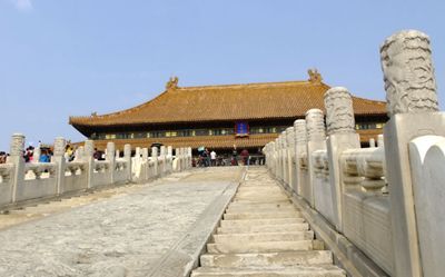 只有皇家宮殿才能使用黃色琉璃瓦來作屋頂。其它建筑,及至官衙、王府等,均不得在其建筑屋頂上鋪設(shè)黃色琉璃瓦。故宮的宮墻就是紅色的,而上面的琉璃瓦以及眾多殿宇的頂是黃色,從五行上分析,這體現(xiàn)了紅色的火和黃色的土相生的原理。