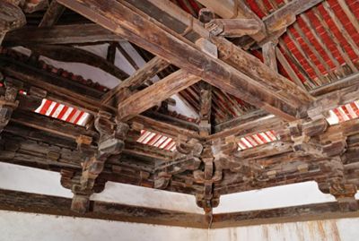 簡單來說,斗拱的結構功能就是承受上部挑出的屋檐,將其重量集中到柱子上。斗拱的存在使得受力的梁柱化整為零,變化成數(shù)百個小構件,再將這些小構件運用榫卯的關系組合成一個大構件,于是產(chǎn)生許多節(jié)點,化解外力及傳遞重量。