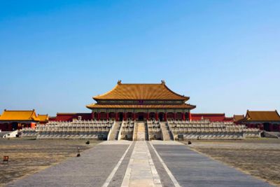 年代越接近現(xiàn)代的建筑,斗拱越小,補間鋪作也增多,比如明清時期,建筑結構簡化,梁的寬度被加大到比柱徑還大,然后直接放在柱上,因此斗栱的結構作用幾乎完全消失,比例上大大地縮小,幾乎變成了純粹的裝飾品。