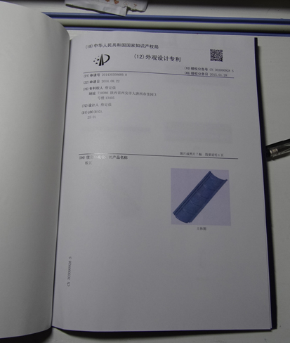 2015年1月28日我公司研發(fā)生產(chǎn)的鋁板瓦專利獲得中華人民共和國國家知識產(chǎn)權(quán)局認(rèn)可并頒發(fā)證書!后面筒瓦等相關(guān)專利都在申請中!